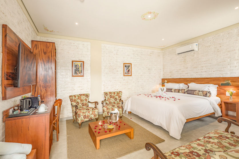 Nossos quartos são equipados com camas americanas softpillow, edredom e seleção de quatro tipos de travesseiros, Smart TV de 43", frigobar, wi-fi free, ar-condicionado, chaleira/cafeteira Nespresso e secador de cabelo.